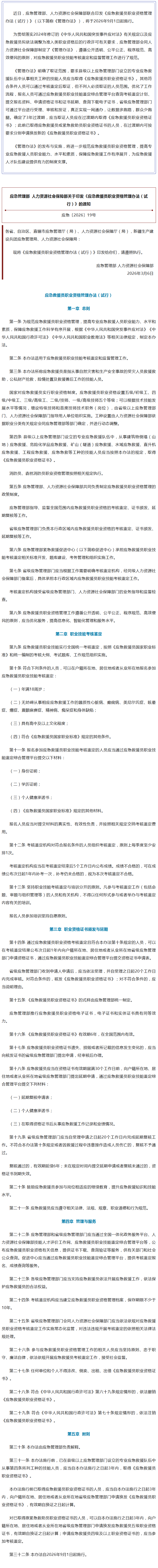 《应急救援员职业资格管理办法(试行)》发布