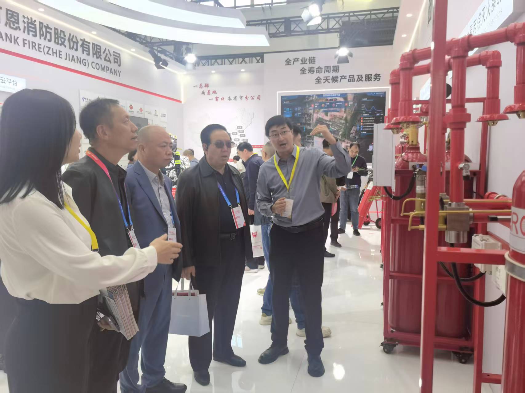 在展会现场,宁夏消防协会一行参观了浙江信达可恩消防股份有限公司生产的气体灭火系统,无人机房绝火云平台,和来自全国的消防救援无人机、消防机器人、新能源灭火药剂及装置等创新成果,并重点围绕智能消防装备、应急救援技术创新、消防安全培训体系建设等核心议题进行交流探讨。