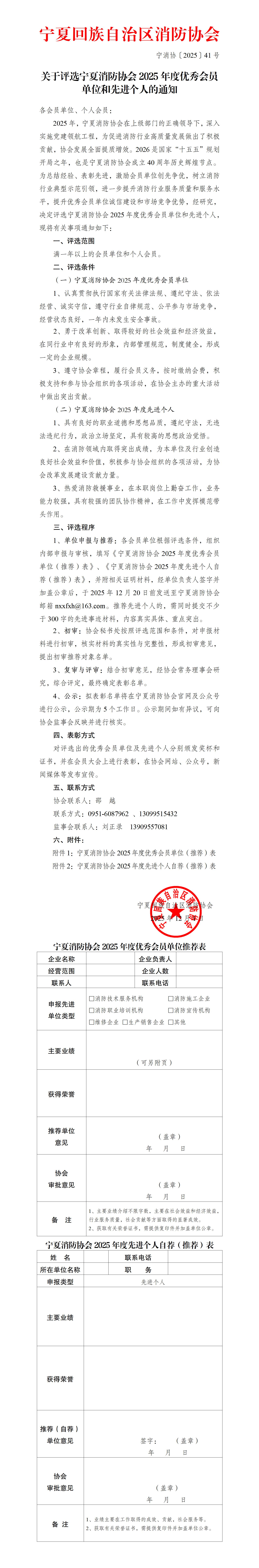 关于评选宁夏消防协会2025年度优秀会员单位和先进个人的通知